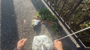 枝に絡んだり、ゴミ袋の手提げにフックが引っかからなかったりで大苦戦。