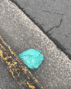 帰り道の緑のゴミ袋
