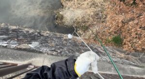 川に揺れるゴミ袋。