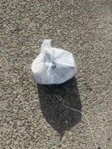 今日のターゲットは、草木に隠れていた白いゴミ袋。最初は手提げが見えず、フックで木々を少しずらす作業が必要でした。でも、一瞬で手提げが見えた瞬間、スムーズに釣り上げ成功!ゴミ袋を釣り上げる感覚は、まるでUFOキャッチャーの景品をゲットしたときのような快感があります。